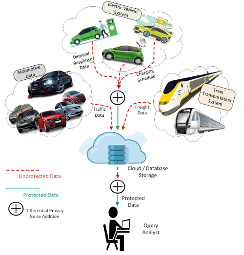 The below figure illustrates use of Differential Privacy (DP) for different distributed industrial applications: