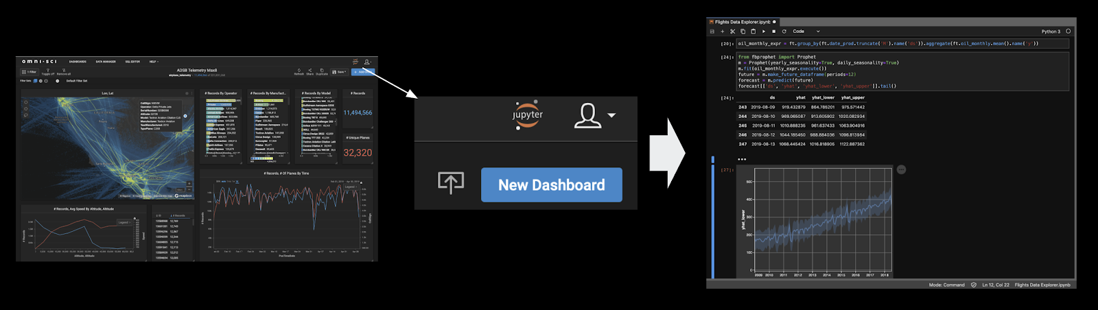 - Data stored in OmniSciDB is available for use in JupyterLab through Ibis connections