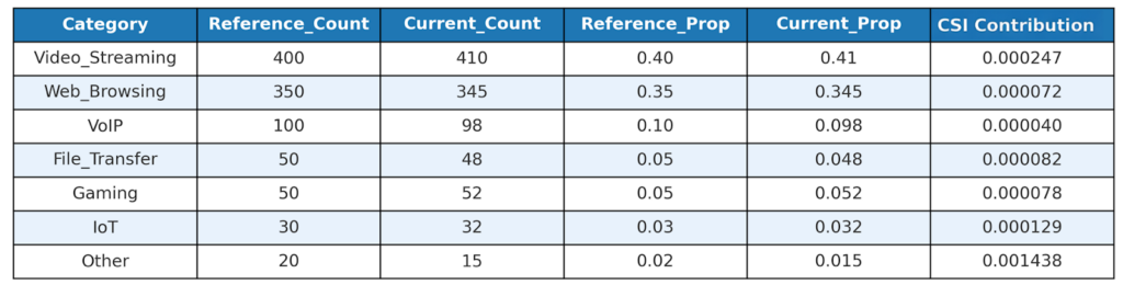 In general, based on the calculated value of CSI, one can evaluate the degree of data drift.